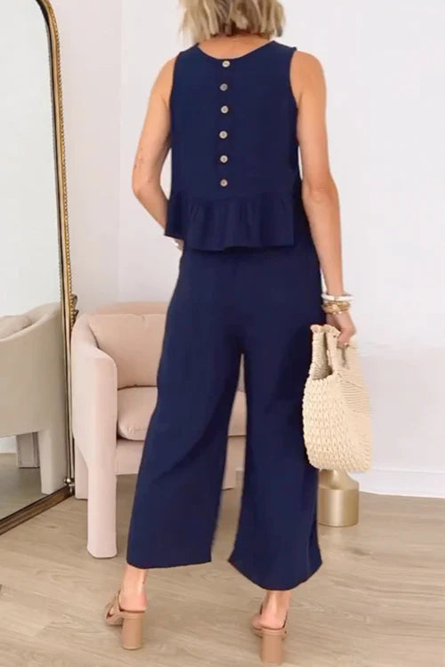 Allison® | Ärmelloses Rüschenoberteil-Hosenset mit weitem Bein