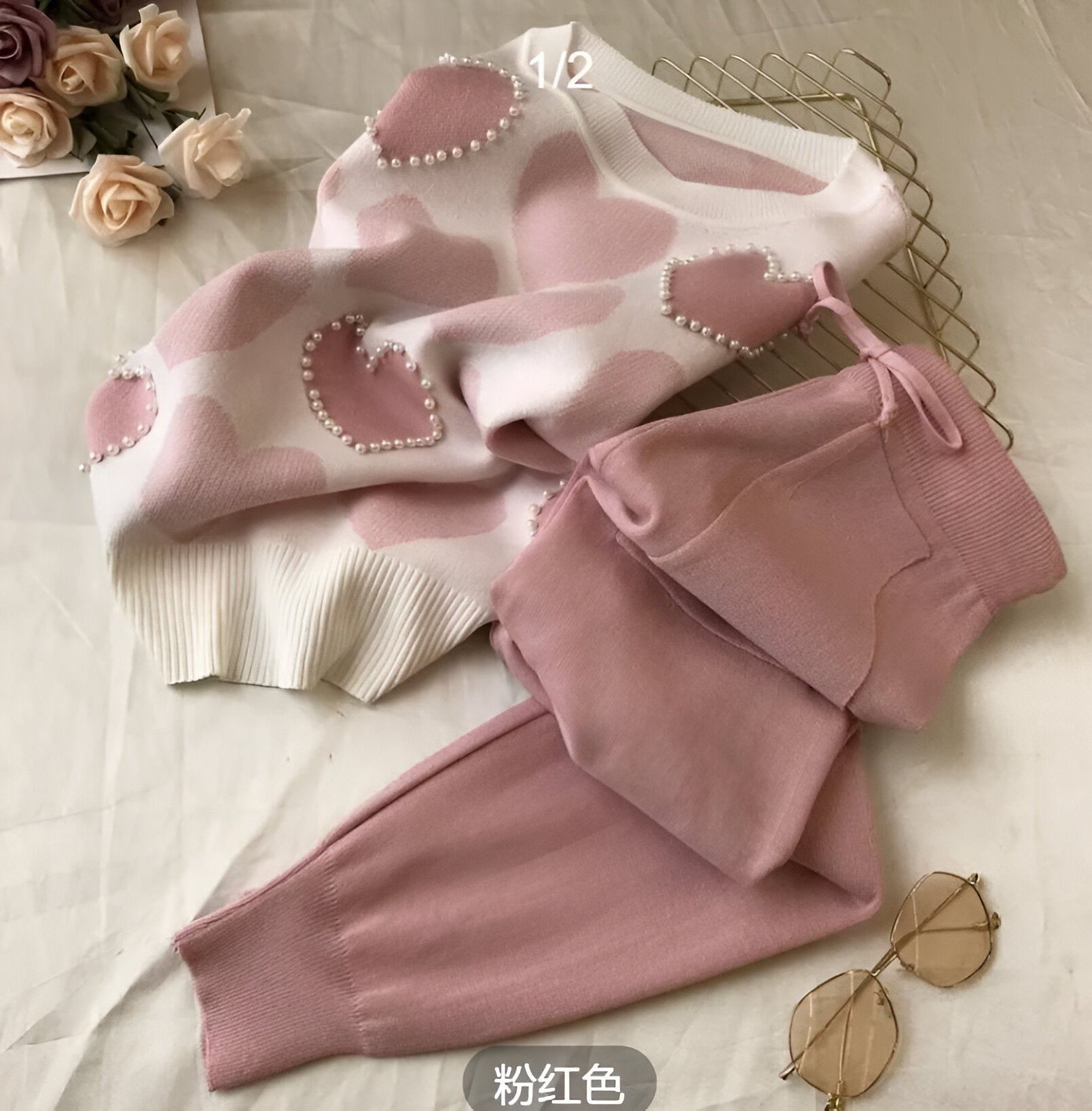 Der weiche Strickstoff der Jacke und der bequeme Sitz der Hose sorgen dafür, dass du dich den ganzen Tag über gemütlich fühlst, ohne auf Stil zu verzichten. Ideal für lange Tage zu Hause oder lockere Ausflüge.