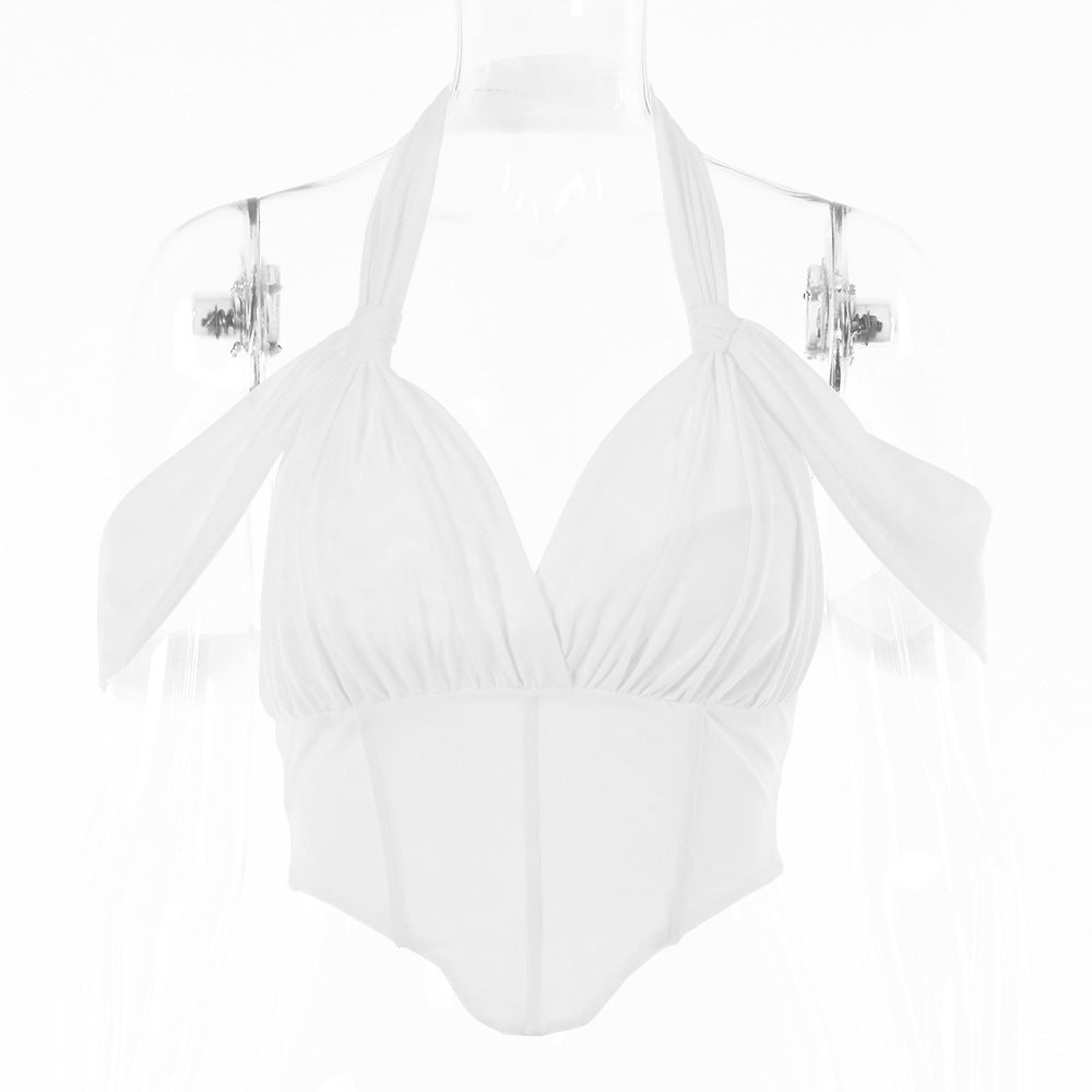 Entdecken Sie unser stylisches Neckholder-Top mit Fischgrätenmuster, perfekt für sommerliche Tage. Hergestellt aus hochwertigem Material, bietet es einen schlanken Schnitt und ist super kurz. Der V-Ausschnitt verleiht einen modernen Touch. Erhältlich in der Farbe Weiß. Dieses Top ist in den Größen S, M und L verfügbar.