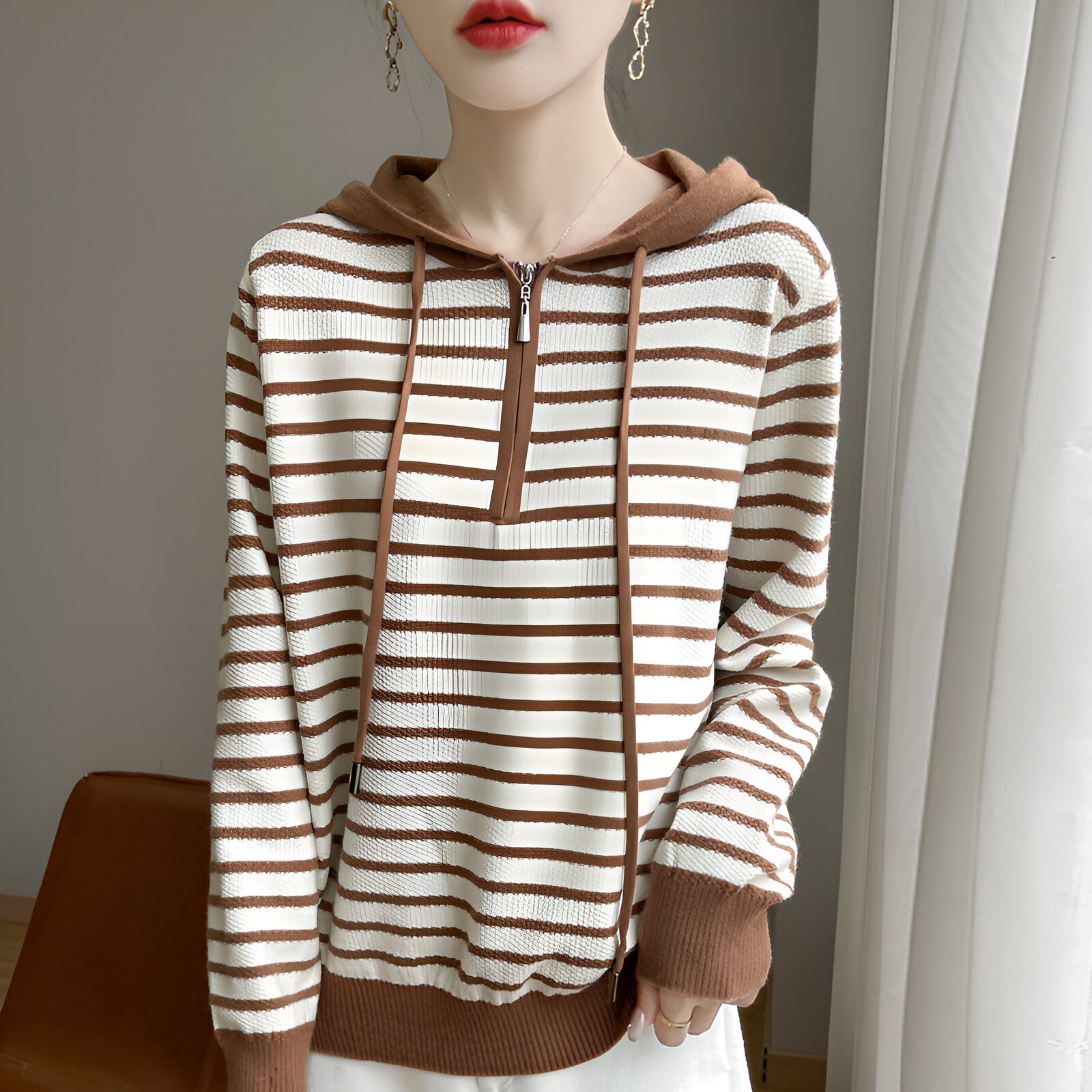 Annika | Gemütlicher und Schicker Gestreifter Strick-Cape-Pullover