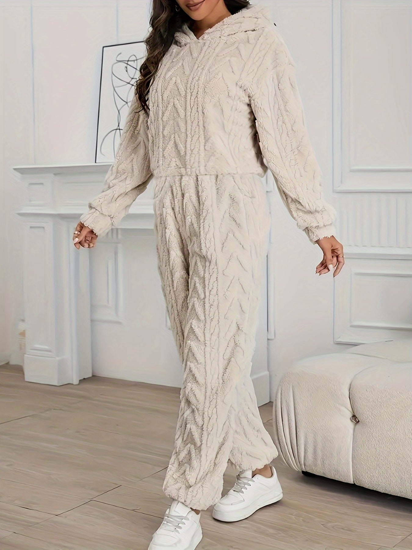 Tauchen Sie ein in Gemütlichkeit und Stil mit diesem eleganten Langarm-Fleece Hoodie Set für Damen, das Wohlbefinden und Mode perfekt miteinander kombiniert!