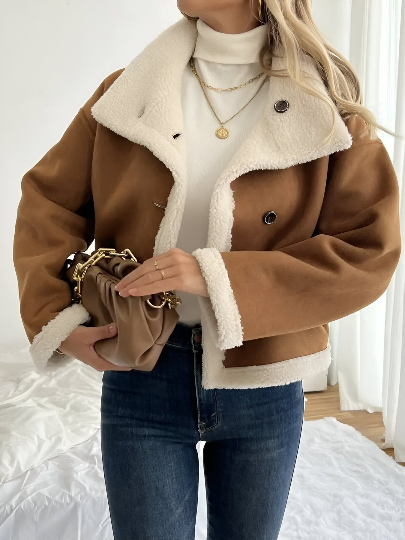 Stell dir vor, du hüllst dich in einen luxuriösen, gemütlichen Fellmantel, der sofort deinen Stil und deine Wärme erhöht. Ob für einen kühlen Herbstspaziergang oder als zusätzliche Schicht im Winter, dieses vielseitige Kleidungsstück sorgt dafür, dass du stylisch und bequem bleibst. Das wendbare Design bietet dir zwei Looks in einem, was es zum perfekten Bestandteil jeder Garderobe macht.