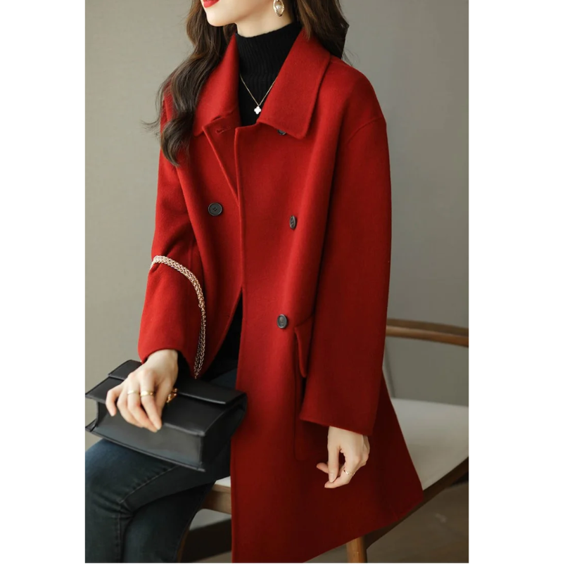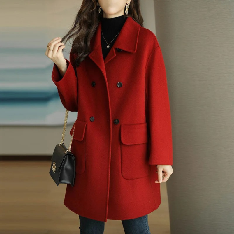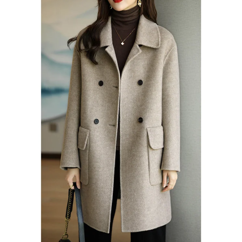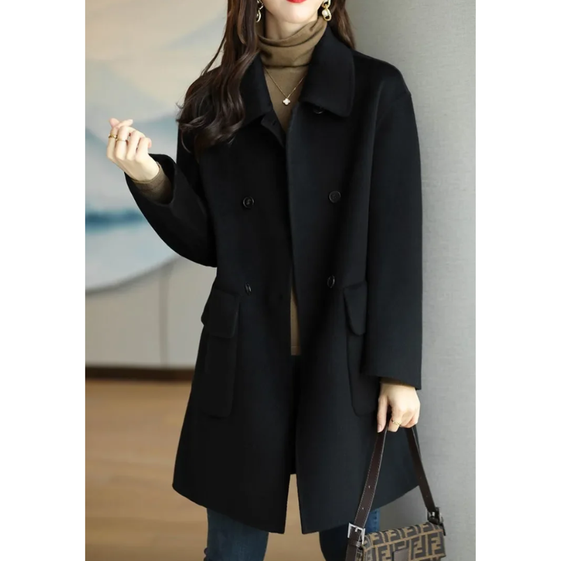 Eleganter Damenmantel - Zweireihig mit Kragen und Taschen