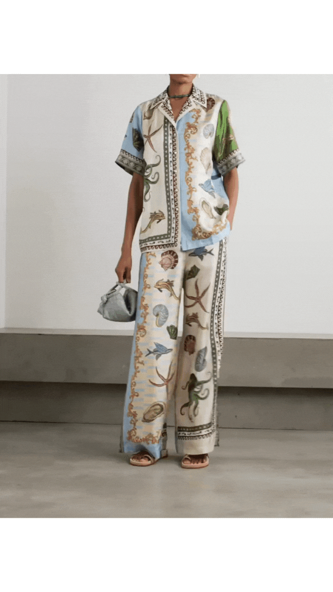 Eine besondere Mischung aus Meeresfarben und botanischer Schönheit – dieses locker geschnittene Shirt lässt sich vielseitig tragen: als Statement-Top, Strandüberwurf oder unter einem Tanktop. Das klassische Knopfdesign sorgt für einen entspannten Look – ideal für Casual- oder Smart-Casual-Outfits.
