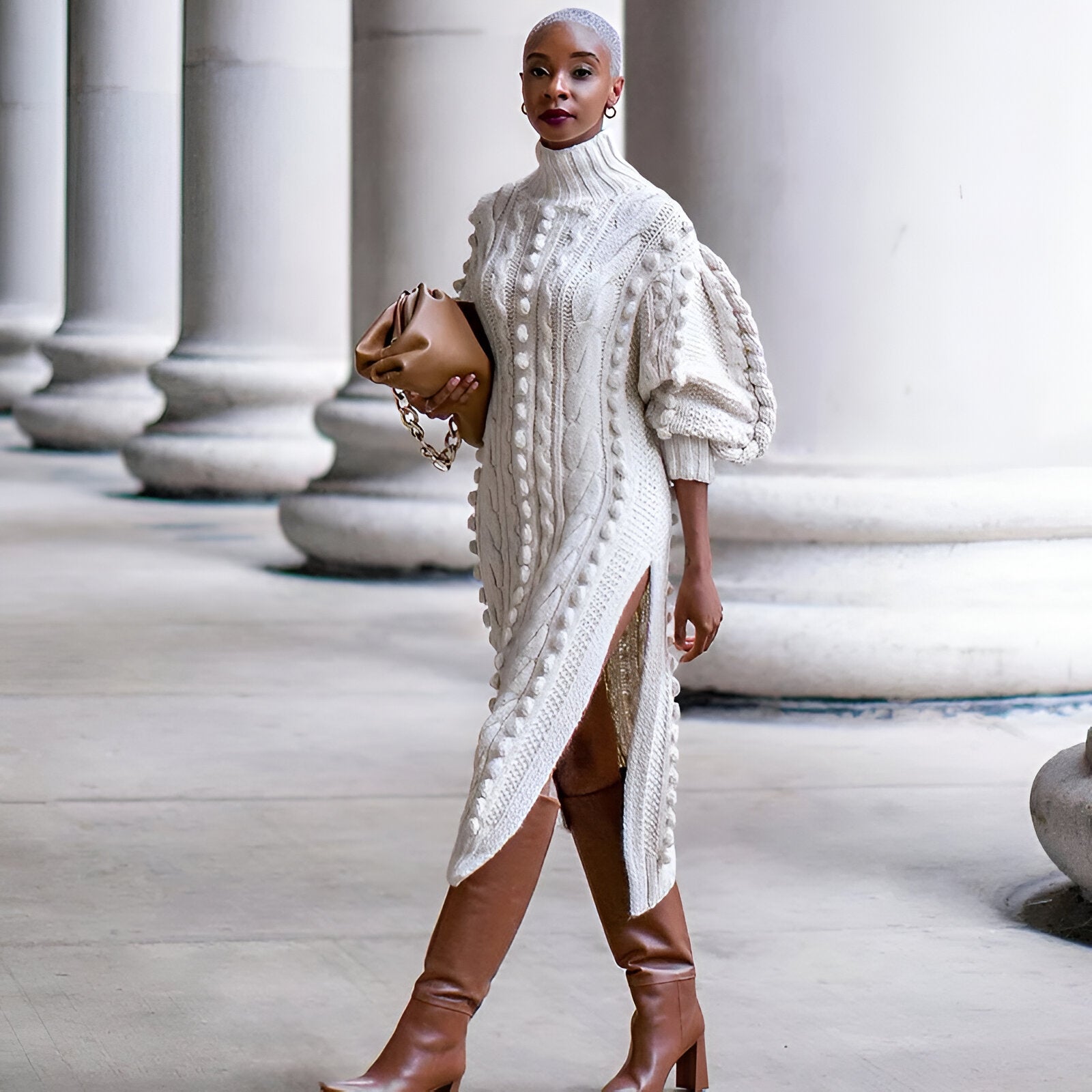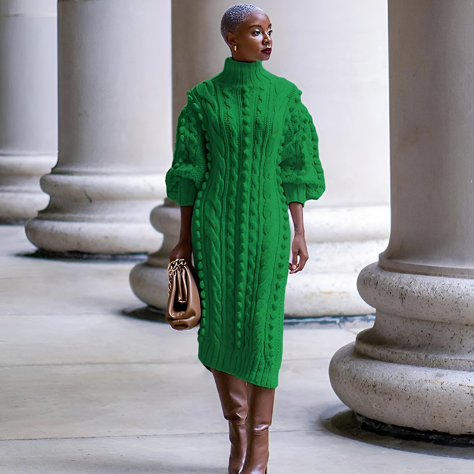 Elsbeth | Elegantes Rippstrick-Turtleneck-Midi-Kleid