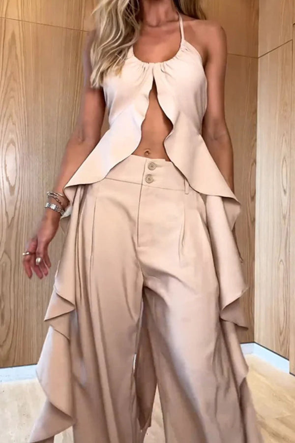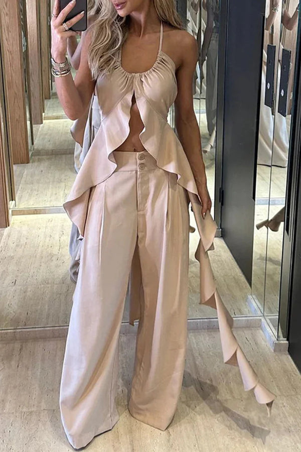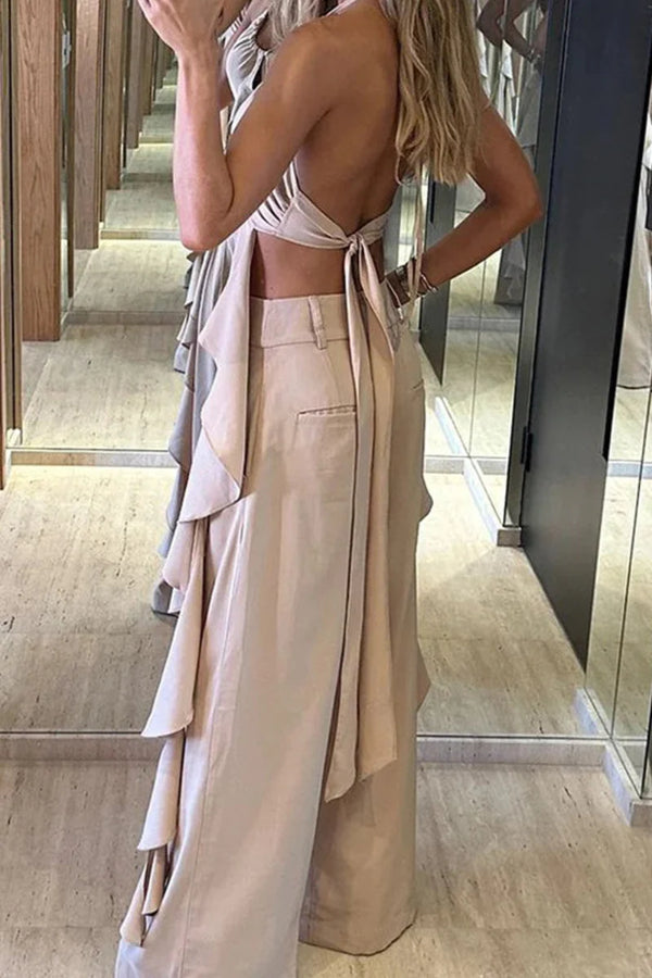 Erika® | Sexy, einfarbig, rückenfrei, Volant, U-Ausschnitt, ärmellos, zweiteilig