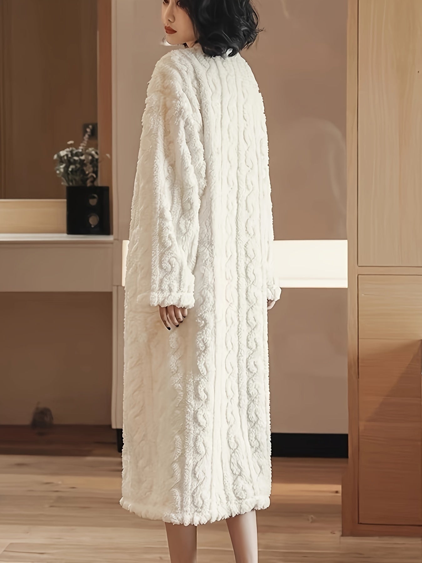 Verwöhnen Sie sich mit purem Komfort in diesem kuscheligen Jacquard-Nachthemd, das perfekt für entspannte Abende zu Hause oder gemütliche Morgenstunden ist. Der dicke, weiche Stoff sorgt dafür, dass Sie stets warm und behaglich eingehüllt sind.