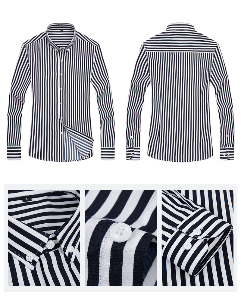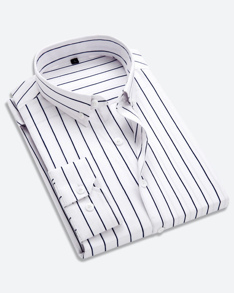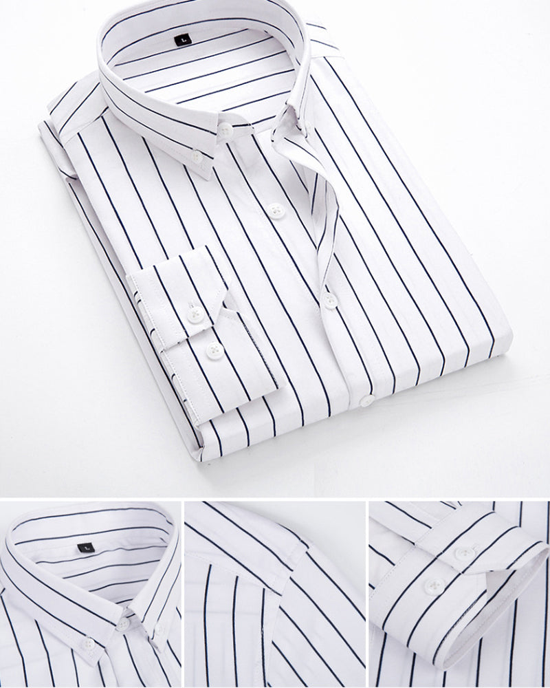 Dieses klassisch gestreifte Business-Hemd verkörpert zeitlose Eleganz und professionelle Raffinesse. Die hochwertige Baumwollmischung sorgt für optimalen Tragekomfort während langer Arbeitstage, während das moderne Streifendesign sich mühelos in Ihre bestehende Business-Garderobe integriert.