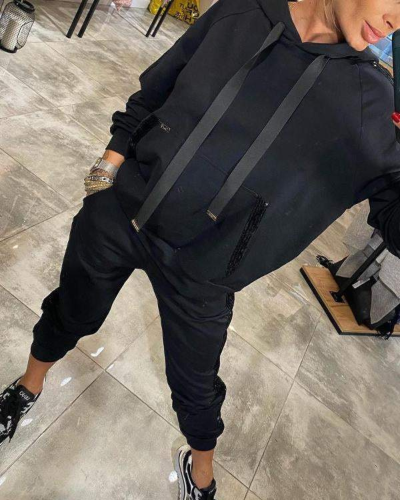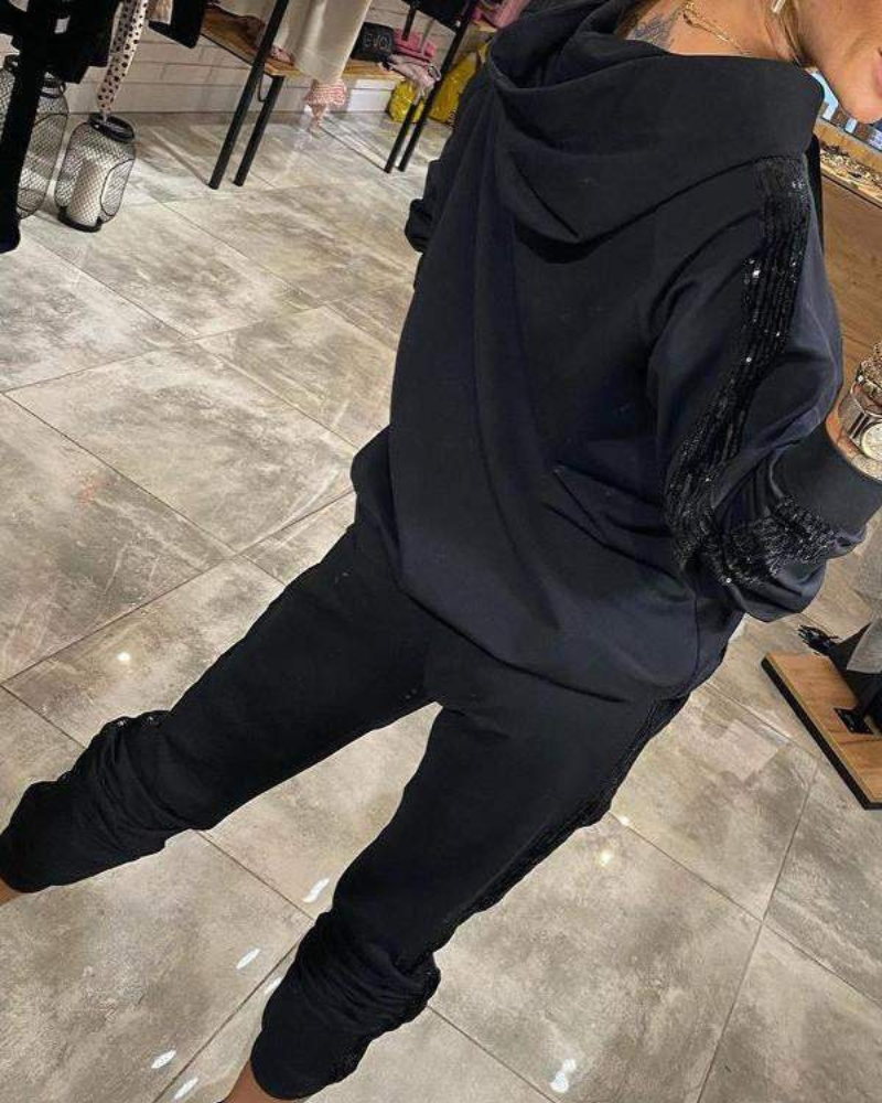 ✅Stilvolle Paillettenverzierung: Das zweiteilige Set Gretta wird durch schimmernde Paillettenverzierungen an den Ärmeln und Hosenbeinen aufgewertet. Diese Akzente fangen das Licht wunderschön ein und verleihen Ihrer Alltagskleidung einen dezenten, aber faszinierenden Glanz. Es schafft eine perfekte Balance zwischen lässiger Bequemlichkeit und einem Hauch von Glamour und eignet sich daher ideal sowohl zum Entspannen als auch zum Ausgehen.