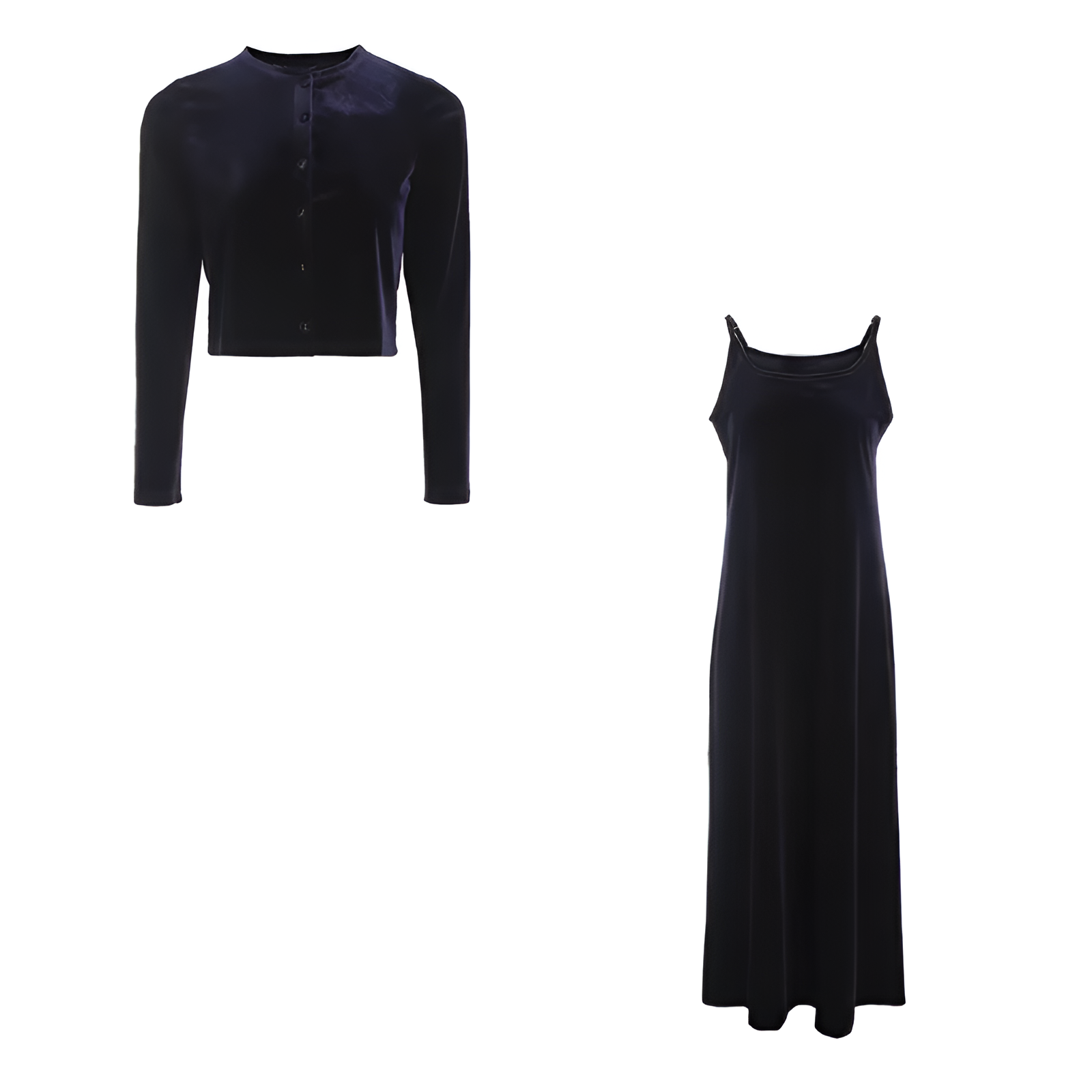 Tauche stilvoll in die Saison ein – mit diesem zeitlosen Samt-Westen und Trägerkleid-Set, das perfekt dafür sorgt, dass du warm bleibst und gleichzeitig elegant aussiehst. Stell dir vor, du schlüpfst in diesen luxuriösen Samt-Westen, kombiniert mit einem schicken Trägerkleid – ideal für festliche Anlässe oder einen gemütlichen Abend. Dieses Set verleiht dir mühelos einen eleganten Look. Mit kostenlosem Versand ist dein neues Lieblingsoutfit nur einen Klick entfernt.