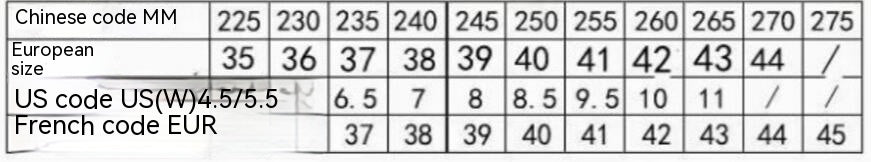| EU-Größe | UK-Größe | US-Größe | Fußlänge (cm) |