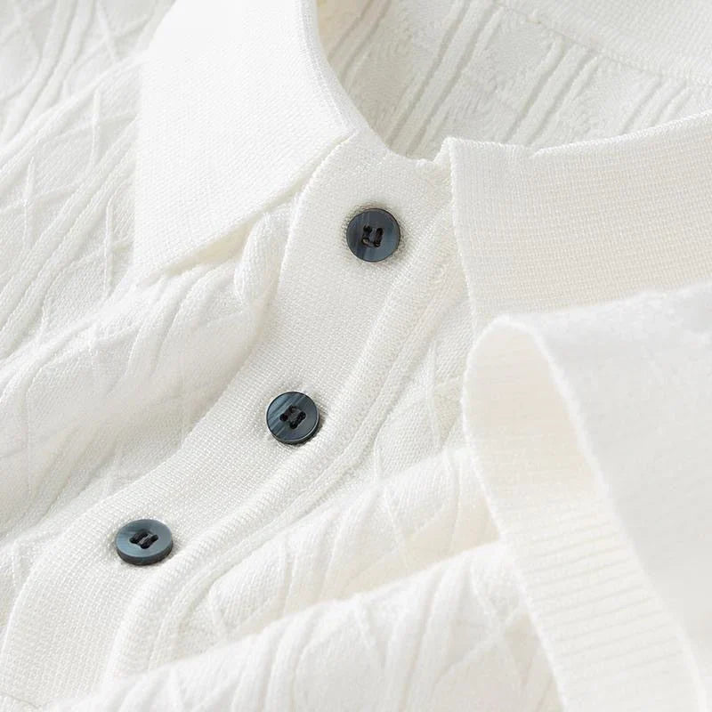 Bereichern Sie Ihre Garderobe mit dem Herren Meister Herren Diamant Knit Polo, das für den modernen Mann entworfen wurde, der sowohl Eleganz als auch Bequemlichkeit schätzt. Perfekt für Freizeitaktivitäten, semi-formelle Anlässe oder das Büro – dieses leichte Strick-Polo sorgt dafür, dass Sie in jeder Situation stilvoll und entspannt wirken.
