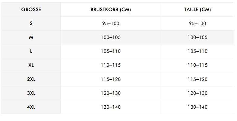 Für den bestmöglichen Tragekomfort empfehlen wir Ihnen, einen Blick auf unsere Größentabellen. Bitte zur benötigten Größentabelle scrollen