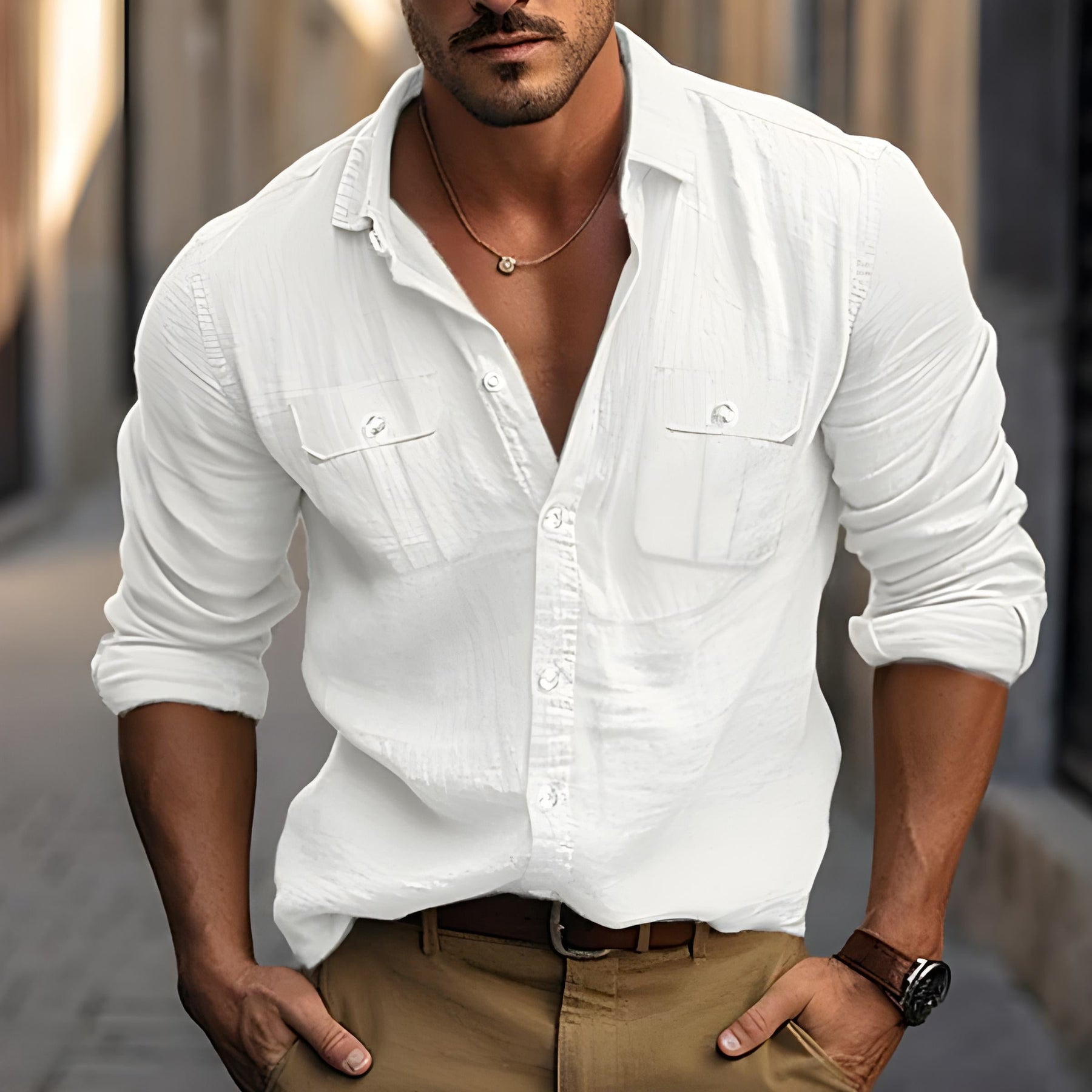 Herrenhemd aus Baumwolle mit doppelter Tasche