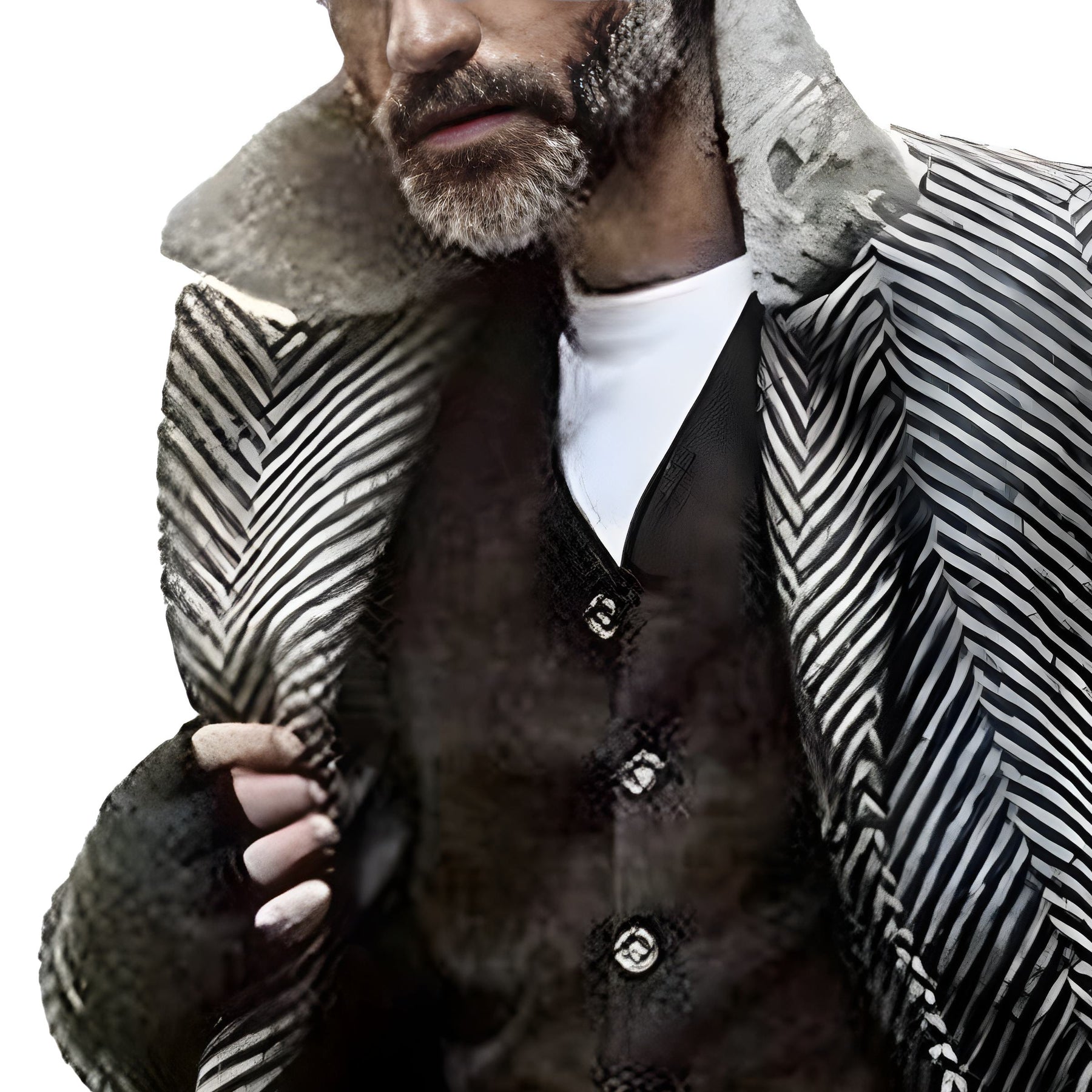 Herrenmantel mit Fischgrätmuster und gespleißtem Pelzkragen