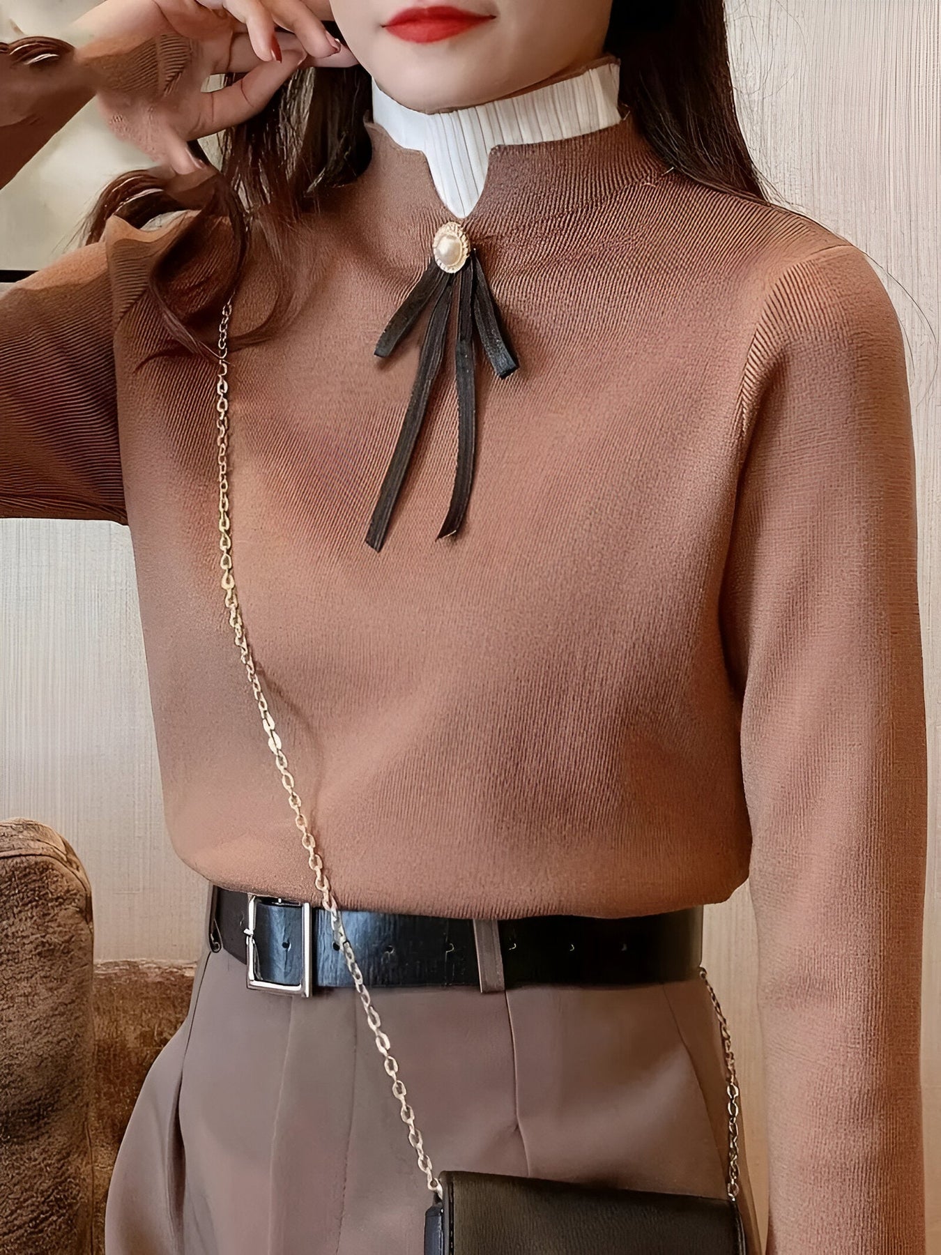 Stell dir vor, je rutschst in ein gemütliches, stilvolles Stricktop, das Komfort mit modernem Design vereint. Mit seinen langen Ärmeln und dem kontrastierenden Kragen ist dieses Top perfekt für den Herbst und Winter. Es bietet Wärme und lässt dich gleichzeitig mühelos schick aussehen. Der Viskose-Mischstoff fühlt sich sanft auf der Haut an, und der leichte Stretch sorgt für eine bequeme Passform den ganzen Tag über. Ob du es für einen lässigen Ausflug anziehst oder zu Hause entspannst, dieses Top wird schnell zu einem unverzichtbaren Teil deiner Garderobe.