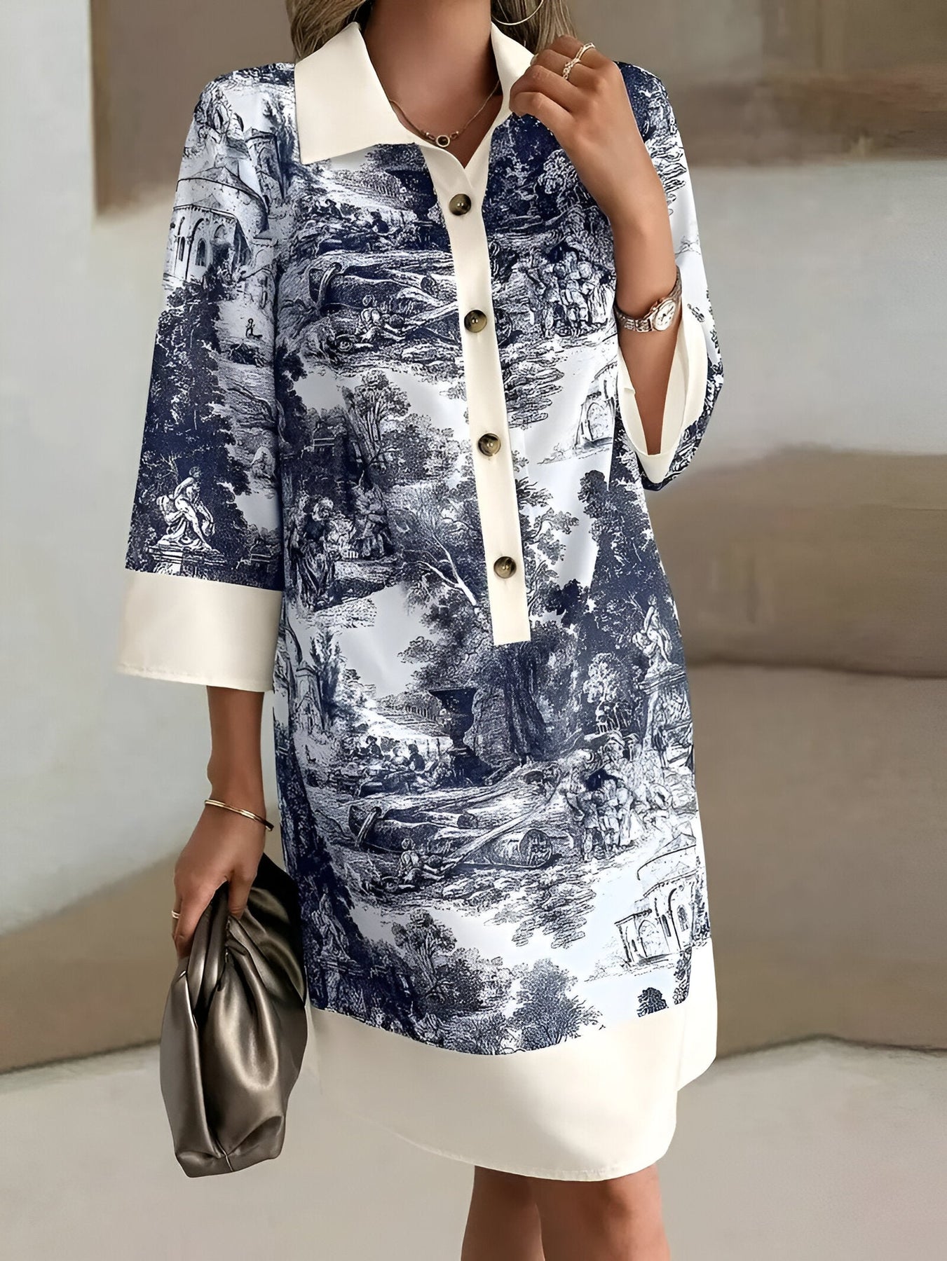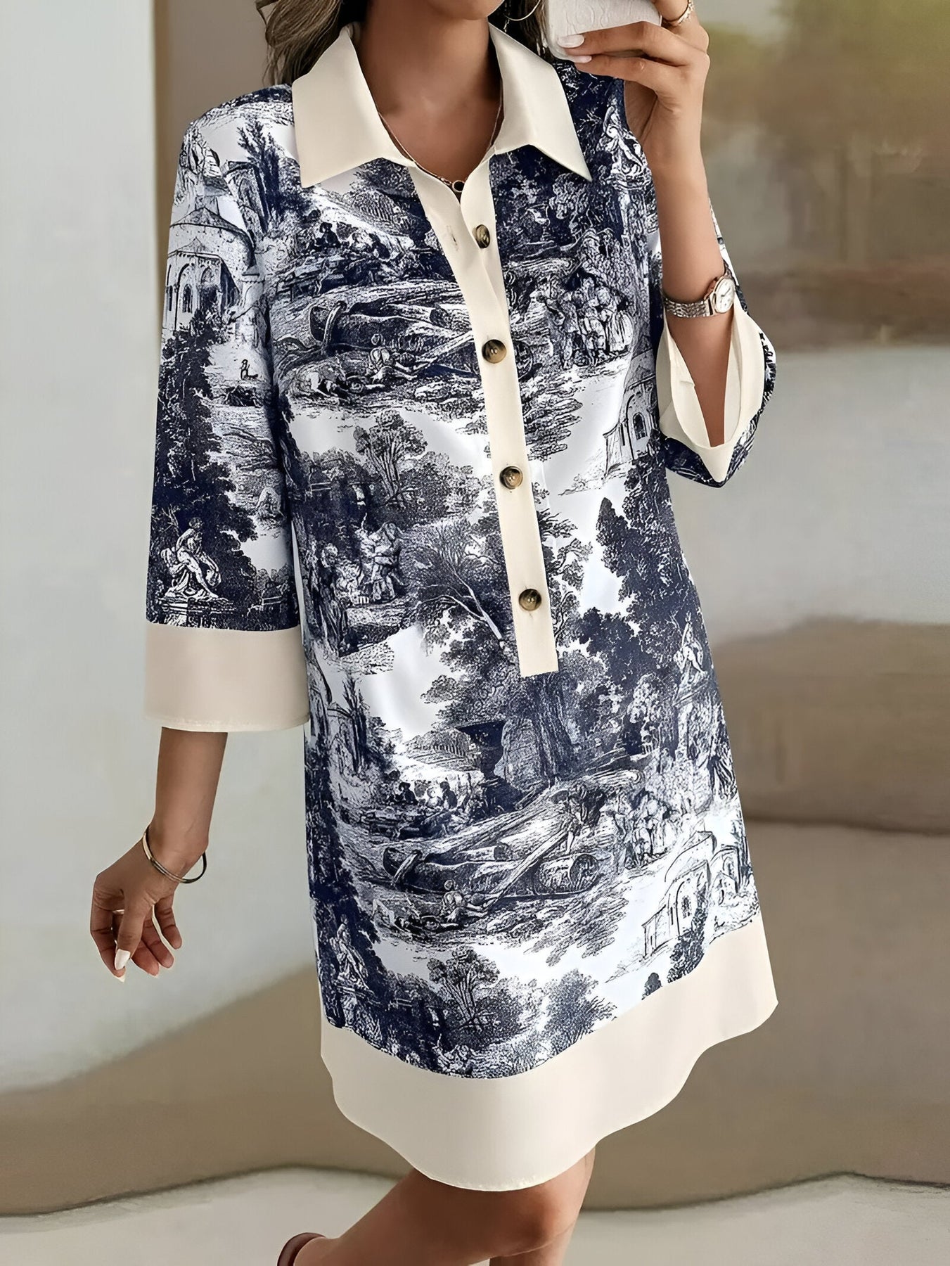 Der zarte Print und die schmeichelhaften Knopfdetails verleihen dem Kleid einen eleganten Look, der sowohl für entspannte als auch formelle Anlässe perfekt geeignet ist. Es ist ein Stück, das nie aus der Mode kommt und immer mühelos gut aussieht.