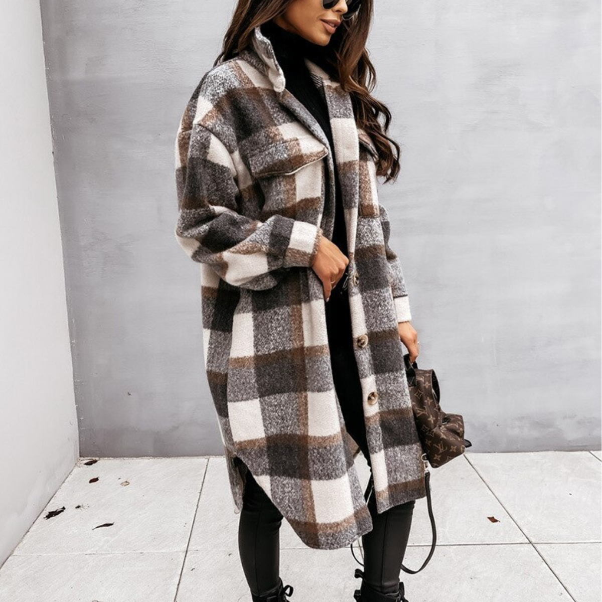Bringen Sie Schwung in Ihre Herbst-/Wintergarderobe mit unserem stilvollen Mantel für Damen mit Karomuster. Dieser Mantel verbindet Mode und Funktionalität perfekt und ist in verschiedenen Farben erhältlich, um Ihren Stil zu unterstreichen. Ideal für die kälteren Monate bietet er sowohl Schutz als auch Eleganz.