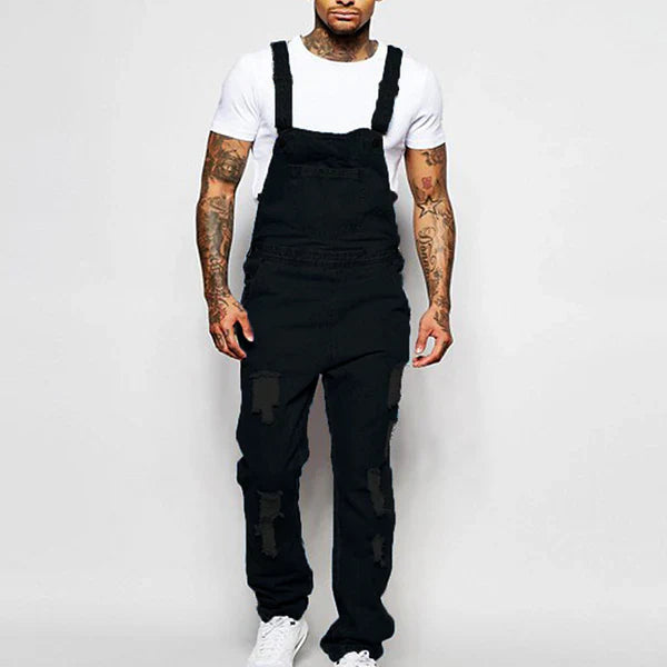 Lässiger Herren-Überalles aus zerrissenem Jeansstoff