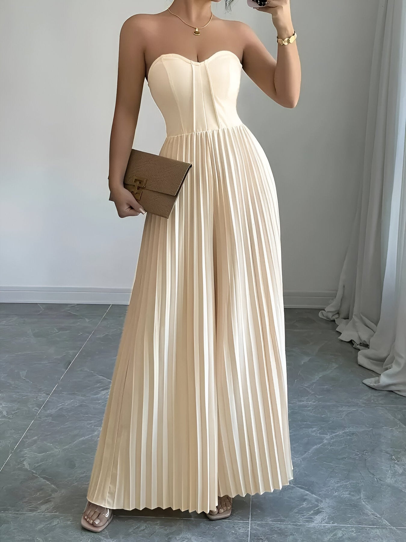 Der drapierte Taillenbund betont deine natürliche Silhouette und verleiht dir eine weiche, feminine Note, die sich mühelos von Tag zu Nacht trägt.