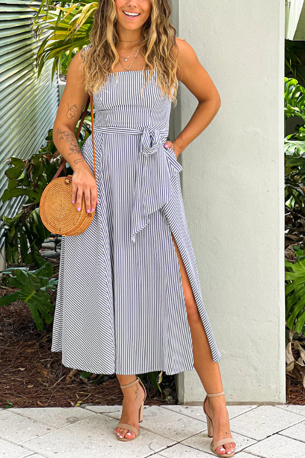 Mayra® | Schwarz gestreiftes Midikleid mit Taschen