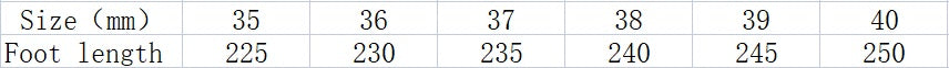 Größentabelle für Damenschuhe