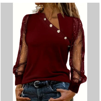 Natalie – Damenoberteil mit Netzdetails und langen Ärmeln