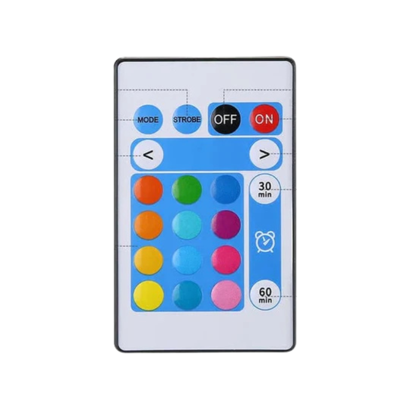 • Fernbedienung für Helligkeit, Farbauswahl und Timer-Einstellungen