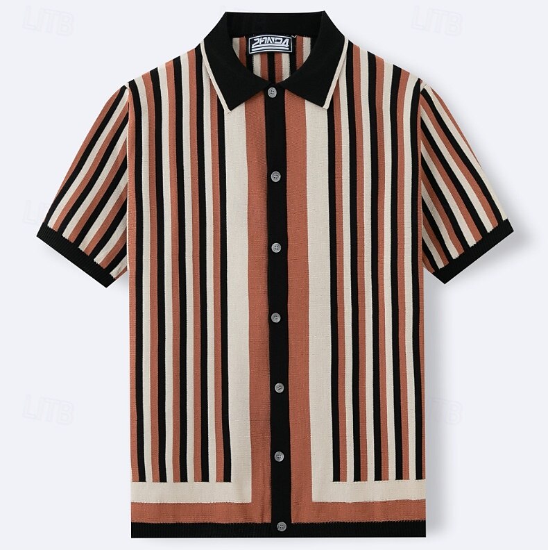 Der weiche, atmungsaktive Stoff sorgt für höchsten Tragekomfort, während die vertikalen Streifen optisch strecken und dem Look eine sportlich-elegante Note verleihen. Die Knopfleiste am Kragen rundet das Design stilvoll ab.