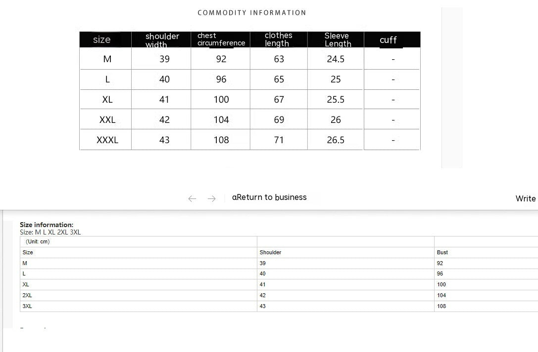 Größentabelle für Herrenoberteile (Shirt, Sweatshirt und Jacken)