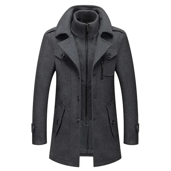 Der schwarze zweiteilige Wintermantel Elias vereint Eleganz und praktische Eigenschaften, die Sie stilvoll und warm durch die kalten Monate begleiten. Ein Must-have für alle, die zeitlose Mode schätzen.