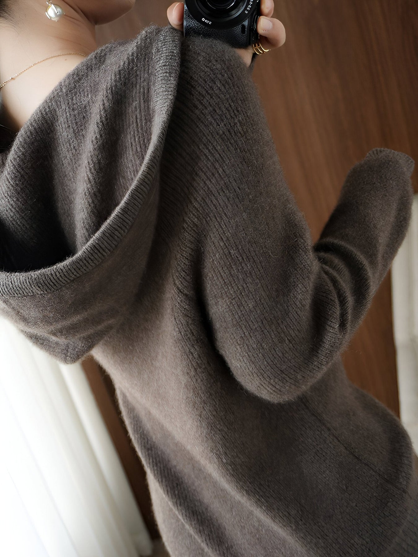 Kuscheliger Kaschmir-Wollmischung Kapuzen-Pullover-Mantel