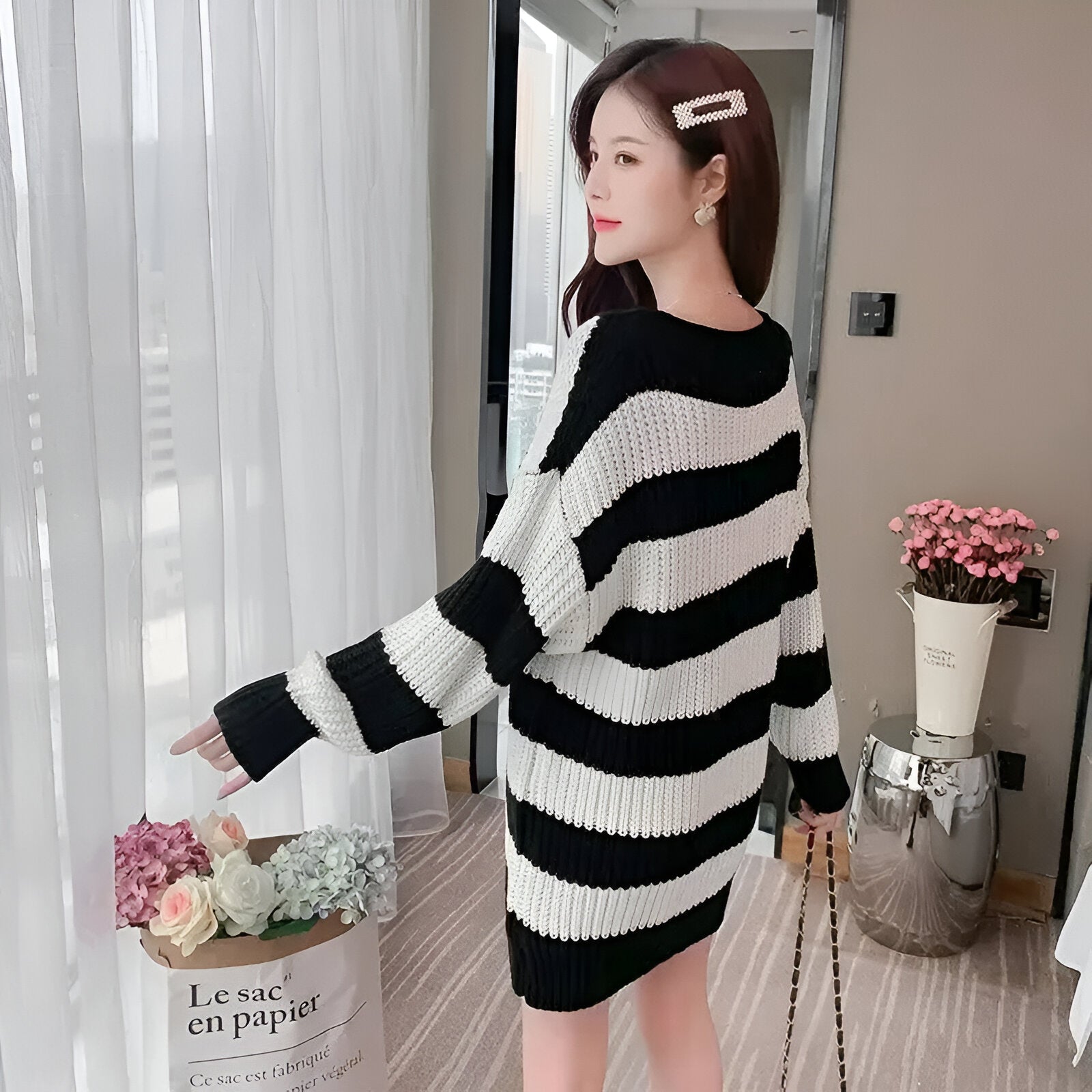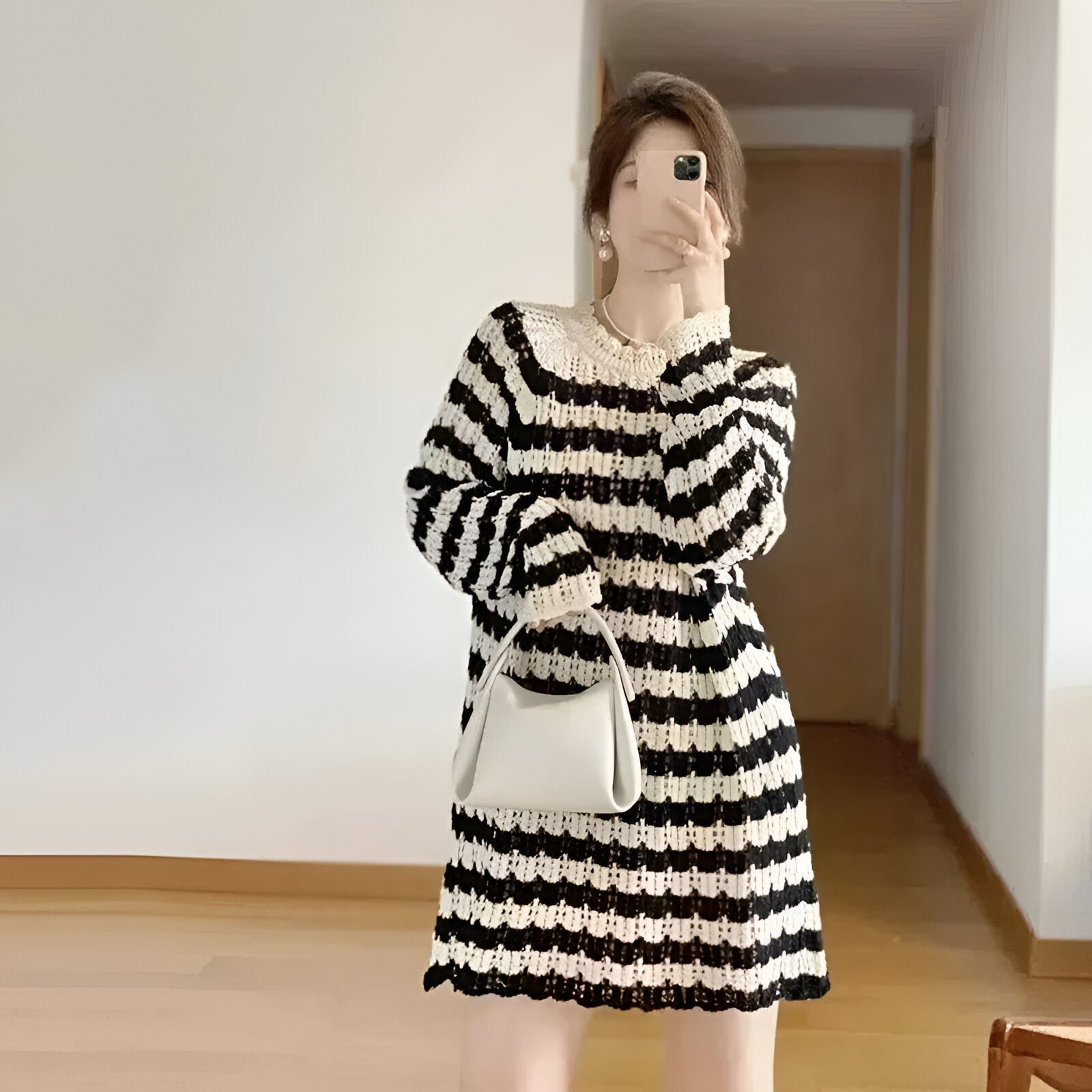 Stell dir vor, du trittst in ein schickes, gemütliches Kleid, das Luxus mit Stil kombiniert – perfekt für jedes Herbst- oder Winter-Event. Dieses elegante Kleid hüllt dich in Komfort und Klasse, egal ob du an einer besonderen Party teilnimmst oder einen entspannten Ausflug machst. Das weiche Strickmaterial und die zarten Häkel-Details machen es zu einem zeitlosen Kleidungsstück, das deine Silhouette betont und dich gleichzeitig warm und stilvoll hält.