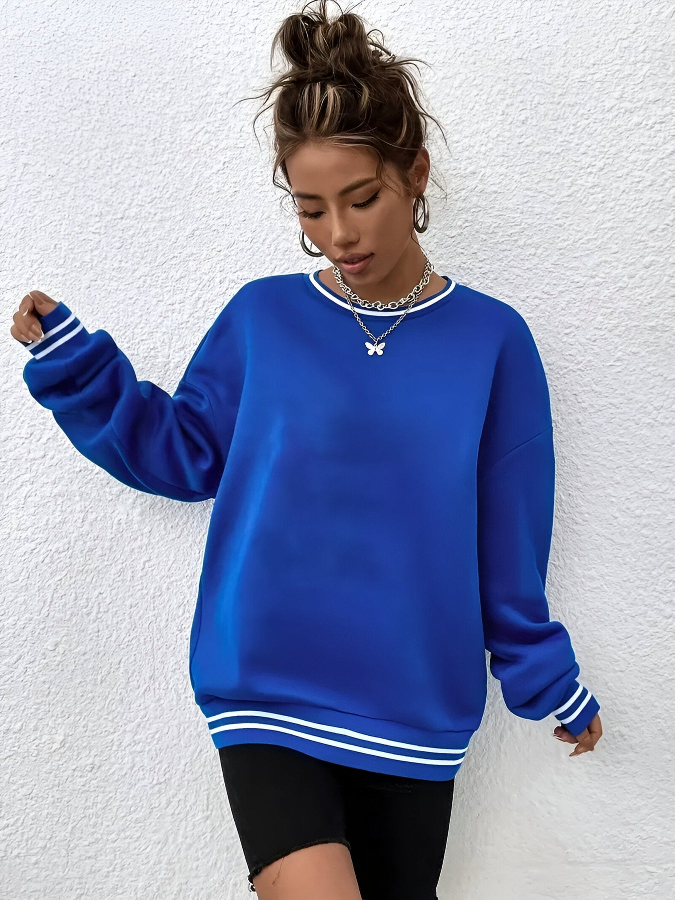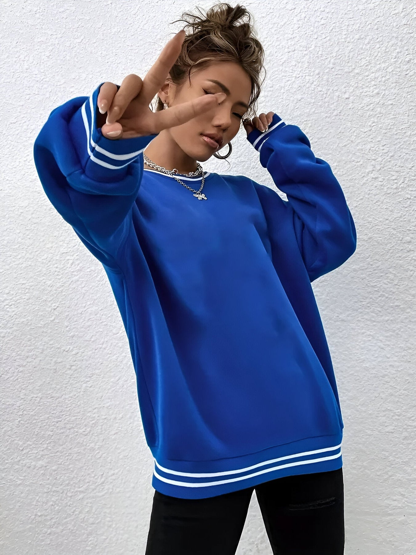 Stell dir vor, du schlüpfst in einen weichen, gemütlichen Pullover, der dir den ganzen Tag über Komfort bietet und dabei gleichzeitig mühelos stylisch aussieht. Mit seinem schlichten, aber modischen Design ist dieser Pullover perfekt für das Schichten an kühlen Herbst- und Wintertagen. Egal, ob du zu Hause entspannst oder für einen lässigen Ausflug nach draußen gehst, dieser Pullover hält dich bequem und sieht toll aus.