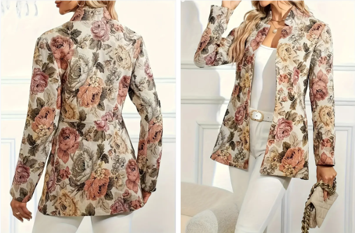 Der Remy ist ein Vintage-Blazer mit Blumenmuster. Das stilvolle und klassische Design sorgt für einen schicken und zeitlosen Look, perfekt für jeden Anlass
