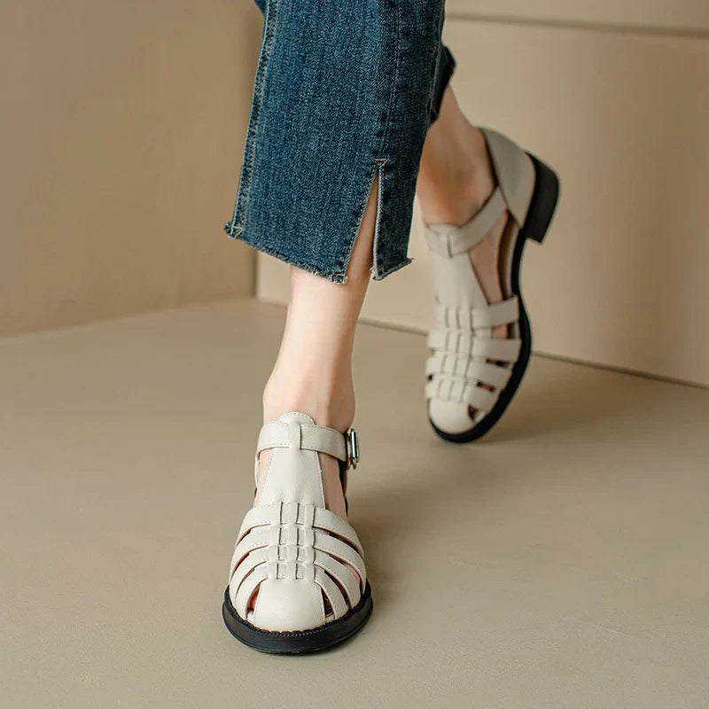 Die Eugene T-Riemchen Sandalen verbinden Retro-Stil mit modernem Tragekomfort. Das geschlossene, geflochtene Design bietet Schutz, ohne auf Atmungsaktivität zu verzichten. Der T-Riemen mit verstellbarer Schnalle sorgt für sicheren Halt – ideal für stilvolle Sommertage oder legere Büro-Outfits.