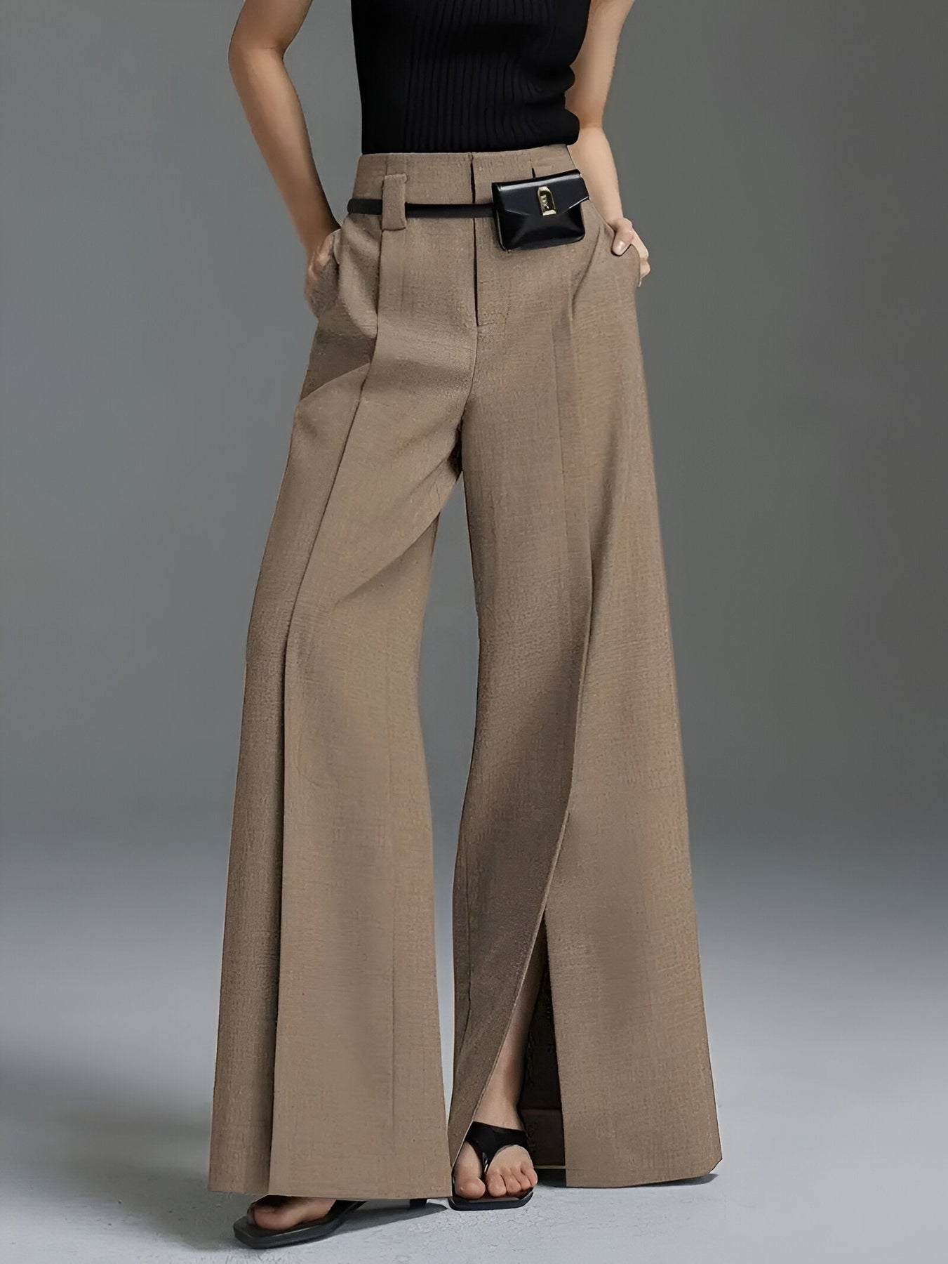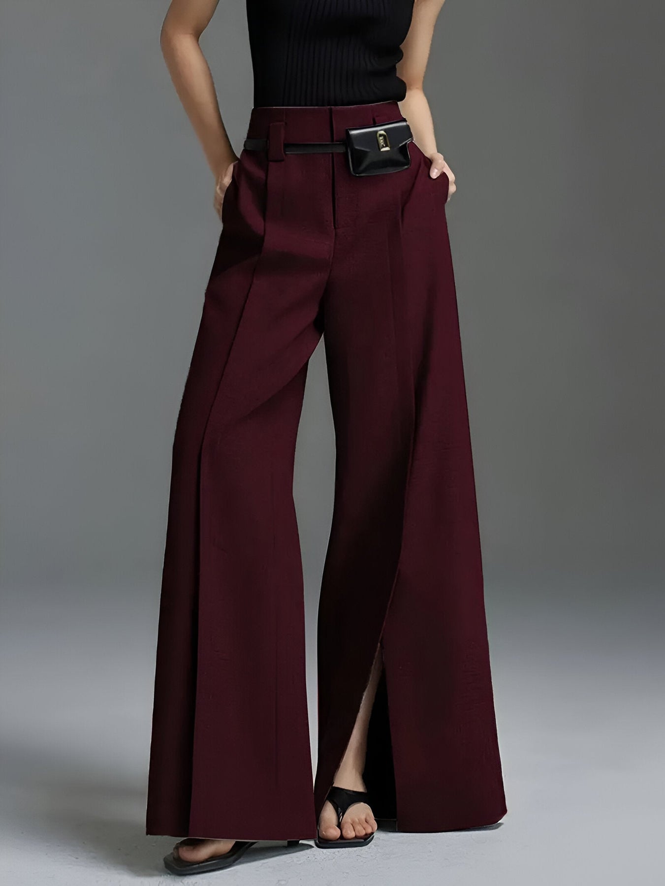 Der gespaltene Saum und die einfarbige Gestaltung verleihen dieser Hose einen zeitlosen Look, der sich problemlos mit jedem Oberteil kombinieren lässt – ein absolutes Must-have für deinen Kleiderschrank.