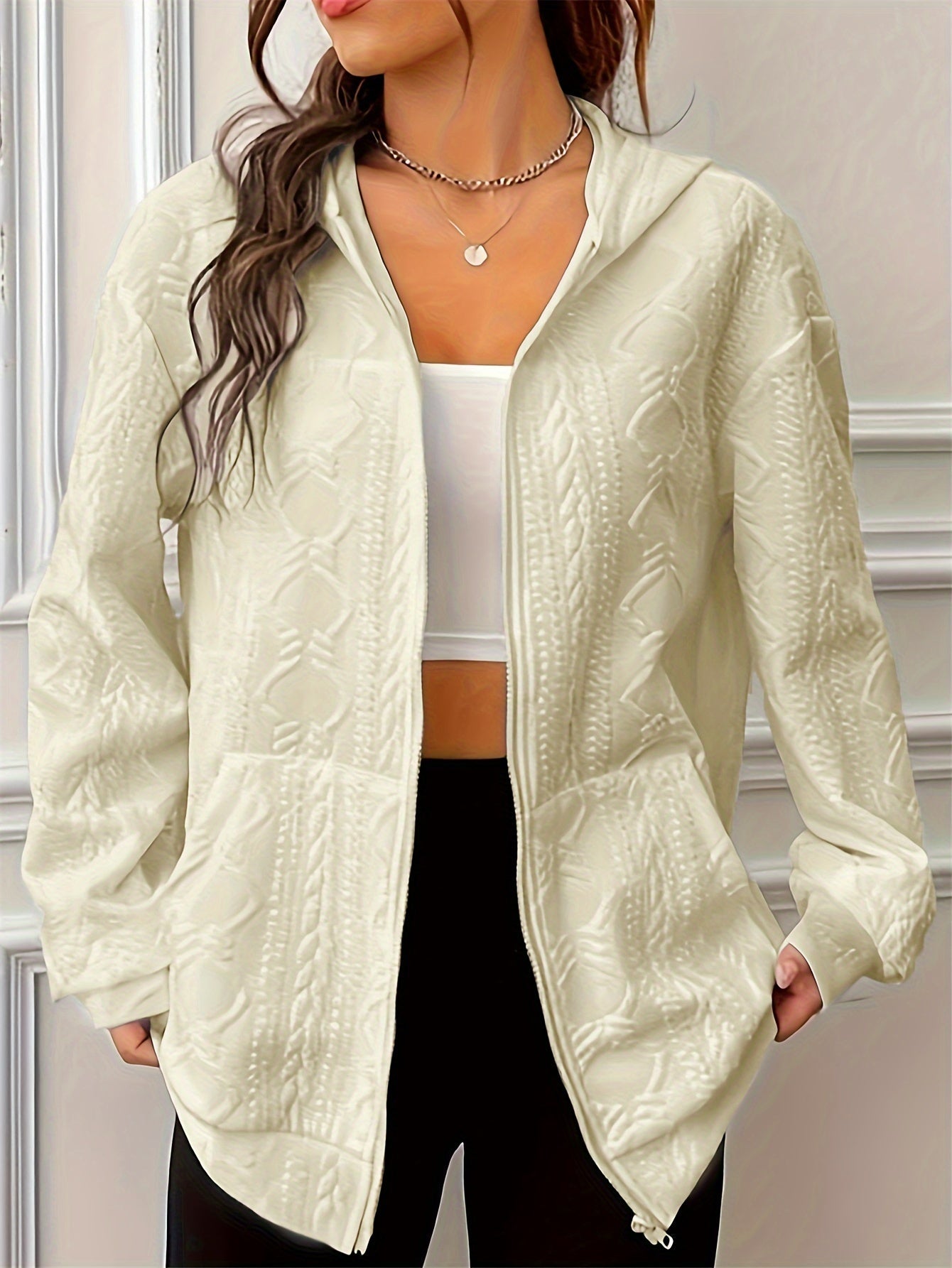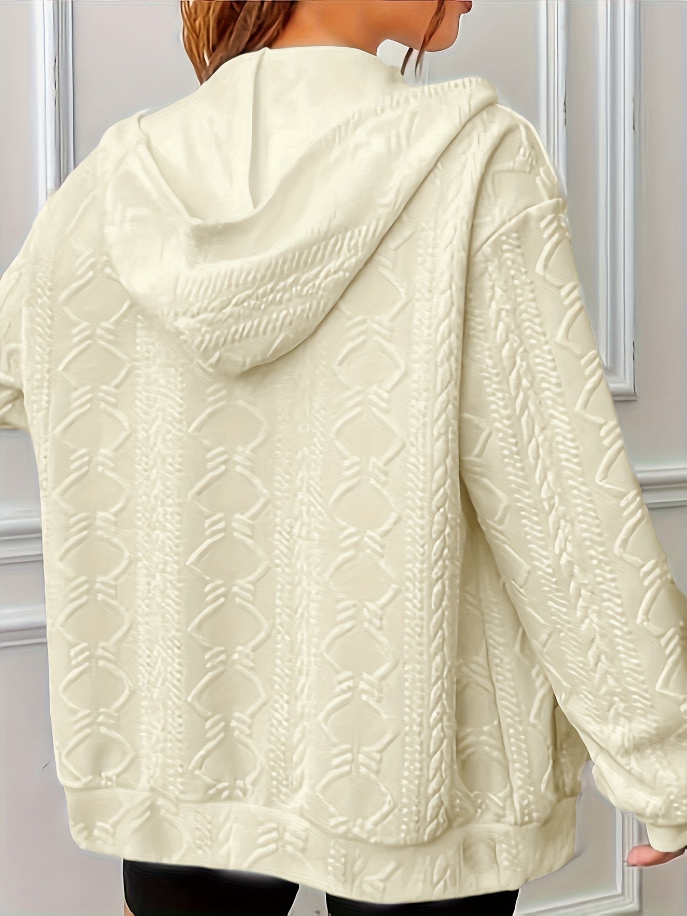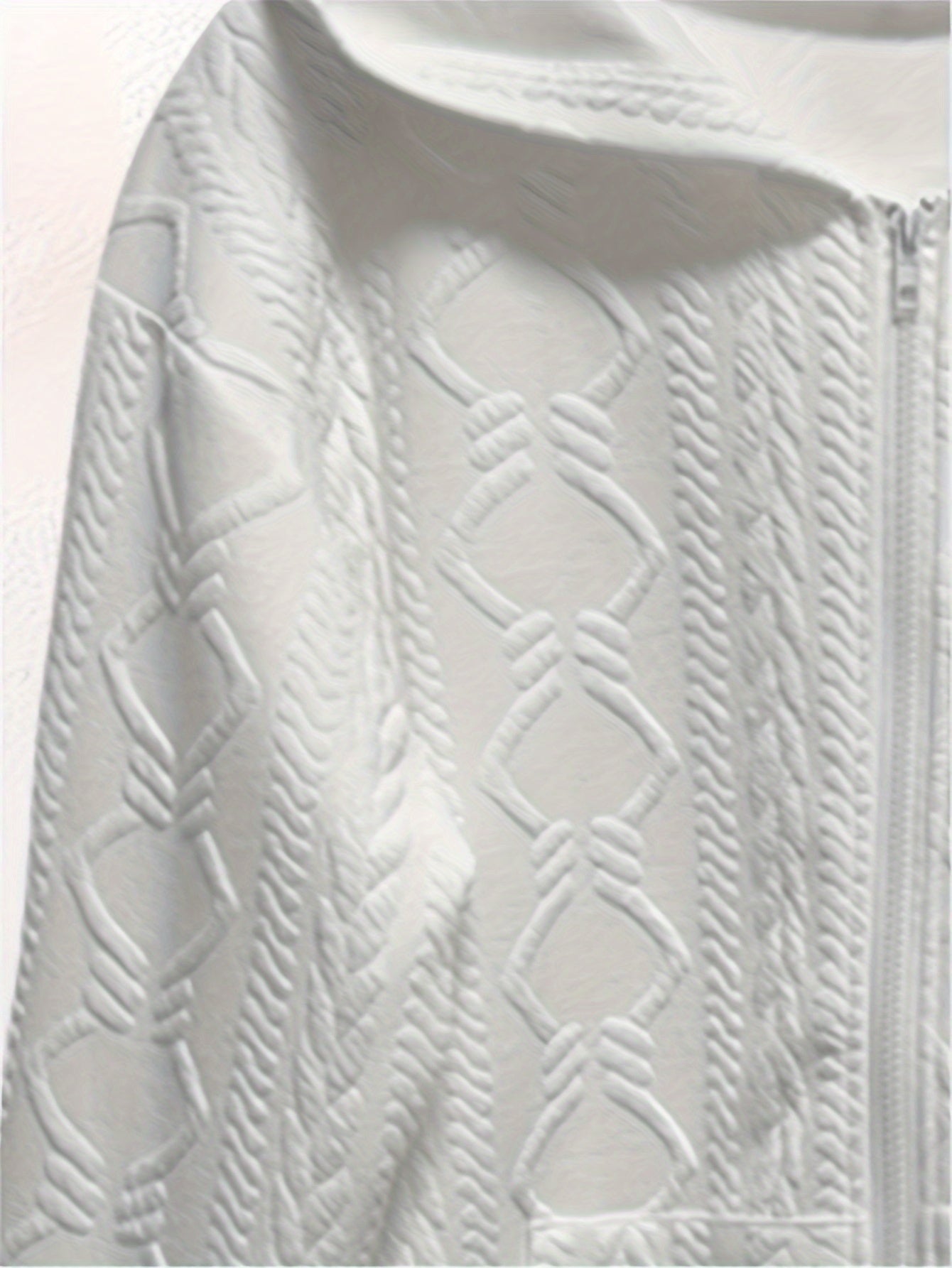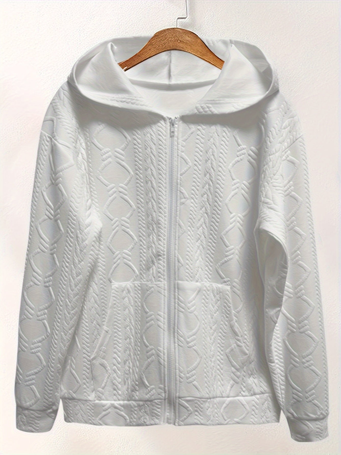 Die Weiße Zopfstrick Kapuzenjacke ist die perfekte Mischung aus Funktionalität und modischem Chic für einen sportlichen und gemütlichen Alltagslook.