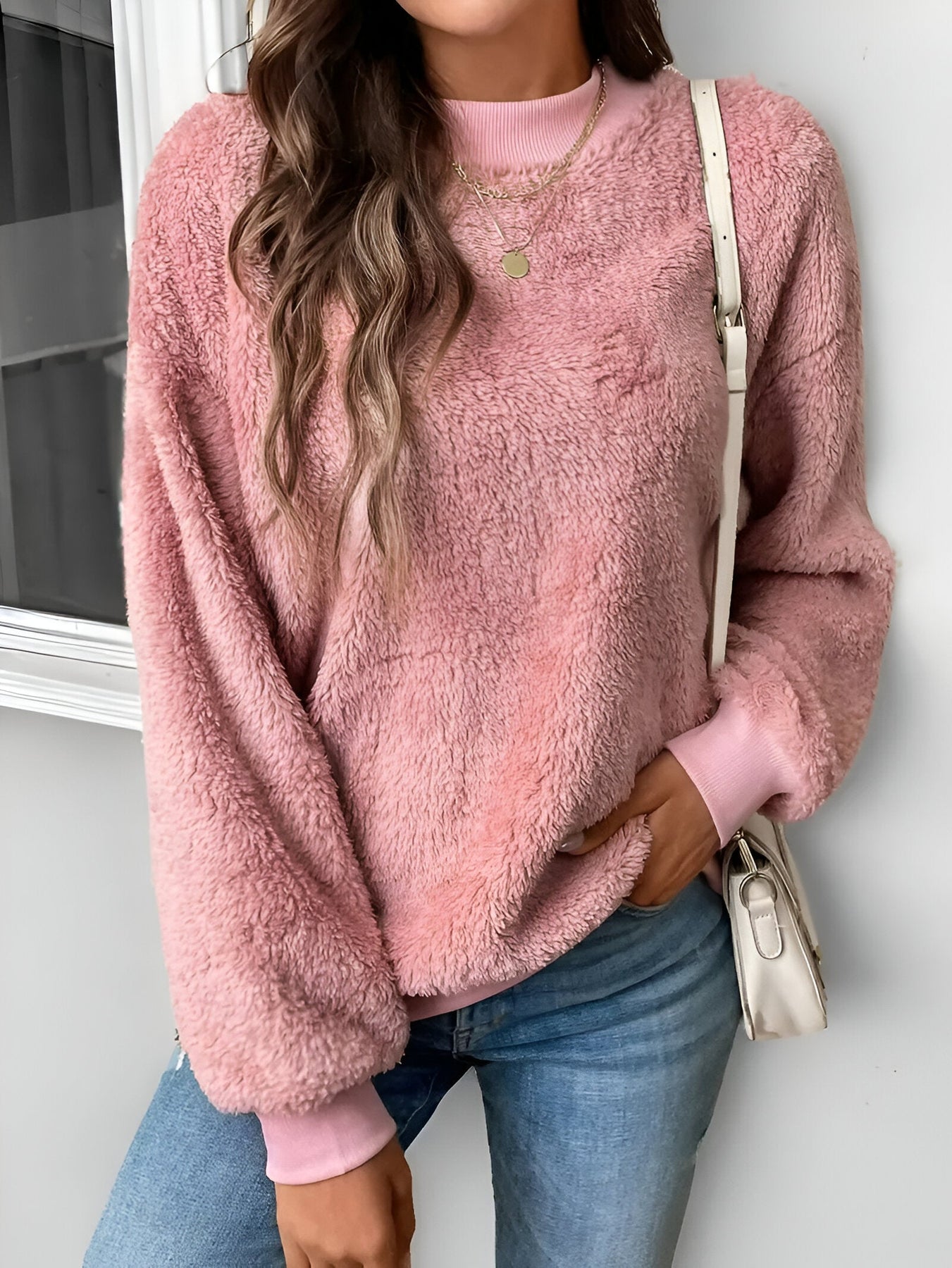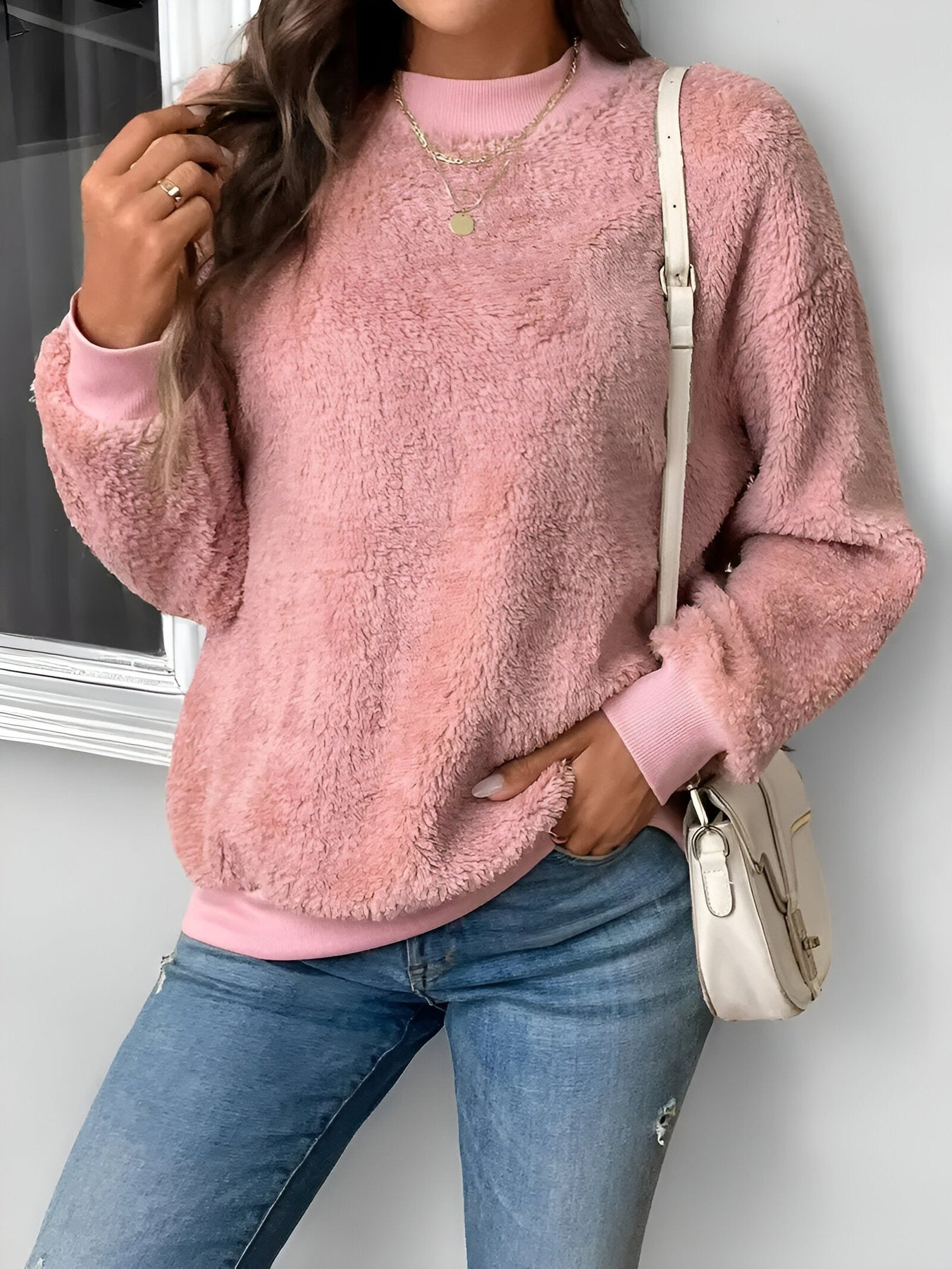 Stell dir vor, du hüllst dich an einem kühlen Herbsttag in eine warme, weiche Umarmung. Dieser gemütliche, flauschige Pullover ist dein perfekter Begleiter für Komfort und Stil. Mit seiner einfarbigen pinken Farbe und dem lockeren Schnitt ist er die ideale Ergänzung für deine Herbst- und Wintergarderobe und bietet dir den ganzen Saison über mühelosen Komfort und Mode.